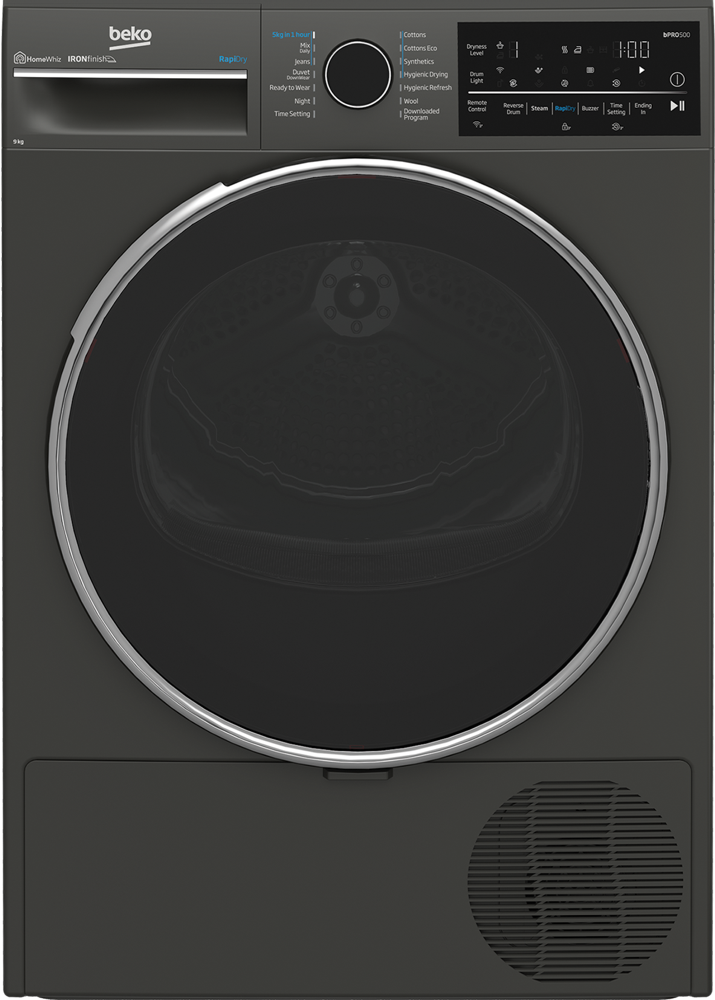 Beko’s 9kg Heat Pump Dryer (BDPB904HG) delivers an eco-conscious drying experience, blending efficient performance with a sustainable design. Featuring OptiSense® Sensor Drying and a ProSmart™ Inverter Motor, it optimises drying cycles while minimising energy use across its 14 drying programs. With its RecycledDry drum, crafted from recycled plastic bottles, and an impressive 8-Star Energy Rating, this dryer is perfect for homes seeking high-performance drying that’s gentle on the planet. From its intelligent drying programs to its eco-friendly construction, Beko ensures your laundry is both effectively dried and environmentally sound.