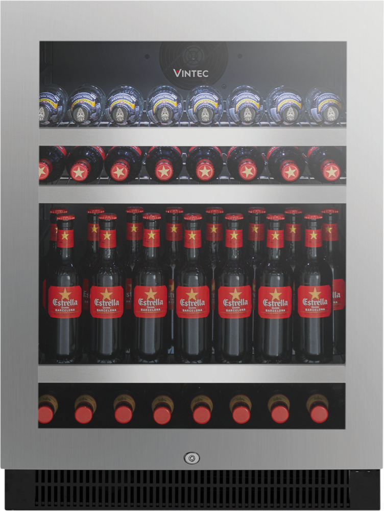 Be prepared to serve icy cold drinks with . The perfect place to store and cool your beer, the cabinet has a 100-beer bottle capacity and its variable temperature means you can even cool White Wine and Champagne. The triple-glazed door with anti-UV glass means all your drinks will be protected from the sunlight. Say goodbye to moving your drinks from inside your home – with this Vintec beverage centre, you can enjoy cold drinks as you cook and entertain outside.